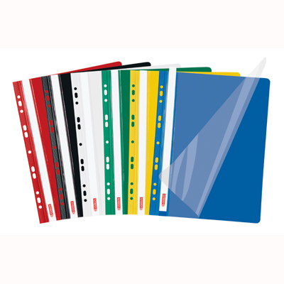 Skoroszyt miękki wpinany Esselte - format A4 z paskiem multiperforowanym umożliwiaj±cym wpięcie do każdego rodzaju segregatora - tylna okładka kolorowa, przednia przezroczysta - multiperforowane - pasuj± do każdego segregatora - opakowanie: 10 sztuk w folii - jednostka sprzedaży 1 opakowanie
