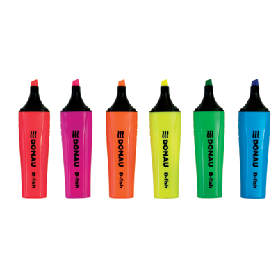 zakreślacz fluorescencyjny do znaczenia tekstu na praktycznie każdym rodzaju papieru zakończony końcówką ściętą grubość linii: 1-5 mm gumowane boku obudowy gwarantują komfort kreślenia oraz zapobiegają wyślizgiwaniu się zakreślacza z dłoni tusz charakteryzuje się wysoką wydajnością oraz trwałością ? nie rozmazuje się specjalnie profilowany klips ułatwia zdejmowanie skuwki występują w 6 żywych kolorach oraz w kompletach: 4 i 6szt.